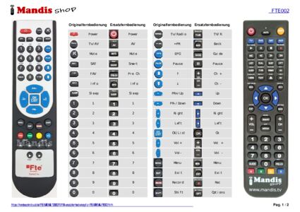 Diese Fernbedienung ersetzt Ihre FTE002 in vollem Umfang und bietet alle Funktionen des Originals.