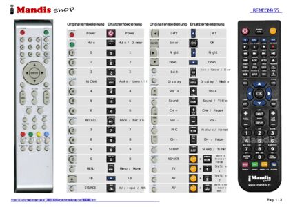 Ein Dokument ist enthalten, um die Verwendung der neuen Fernbedienung zu erleichtern, indem es die Tastenbelegung zeigt.