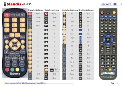 Ein Dokument ist enthalten, um die Verwendung der neuen Fernbedienung zu erleichtern, indem es die Tastenbelegung zeigt.