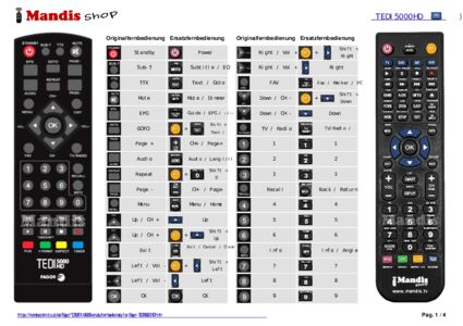 Diese Fernbedienung ersetzt Ihre TEDI5000HD in vollem Umfang und bietet alle Funktionen des Originals.