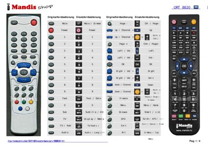 Ein Dokument ist enthalten, um die Verwendung der neuen Fernbedienung zu erleichtern, indem es die Tastenbelegung zeigt.