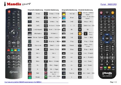 Ein Dokument ist enthalten, um die Verwendung der neuen Fernbedienung zu erleichtern, indem es die Tastenbelegung zeigt.