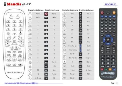 Ein Dokument ist enthalten, um die Verwendung der neuen Fernbedienung zu erleichtern, indem es die Tastenbelegung zeigt.