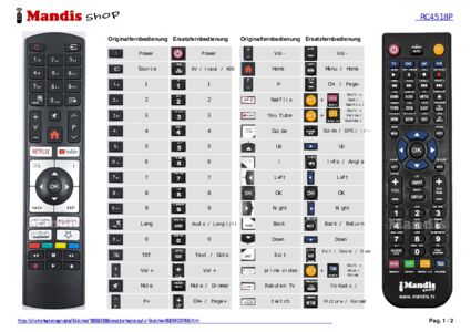 Ein Dokument ist enthalten, um die Verwendung der neuen Fernbedienung zu erleichtern, indem es die Tastenbelegung zeigt.