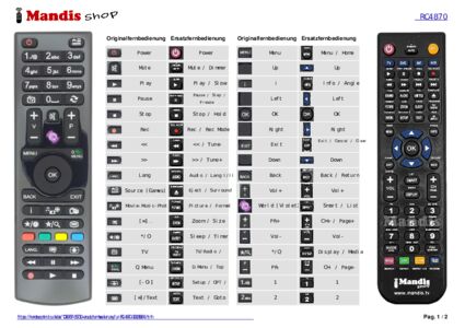 Diese Fernbedienung ersetzt Ihre RC4822 (30072765) in vollem Umfang und bietet alle Funktionen des Originals.
