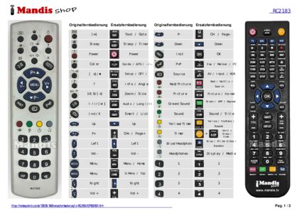 Ein Dokument ist enthalten, um die Verwendung der neuen Fernbedienung zu erleichtern, indem es die Tastenbelegung zeigt.