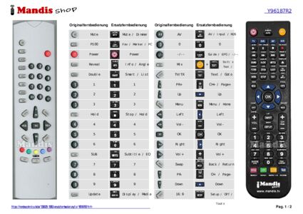 Diese Fernbedienung ersetzt Ihre Y96187R-2 in vollem Umfang und bietet alle Funktionen des Originals.