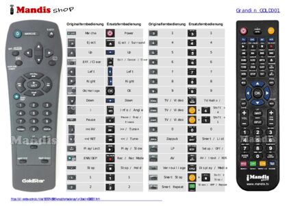 Ein Dokument ist enthalten, um die Verwendung der neuen Fernbedienung zu erleichtern, indem es die Tastenbelegung zeigt.