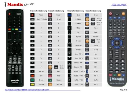 Ein Dokument ist enthalten, um die Verwendung der neuen Fernbedienung zu erleichtern, indem es die Tastenbelegung zeigt.