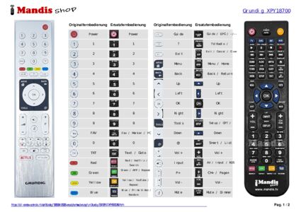 Diese Fernbedienung ersetzt Ihre TS4187R-7 (XPY18700AB) in vollem Umfang und bietet alle Funktionen des Originals.
