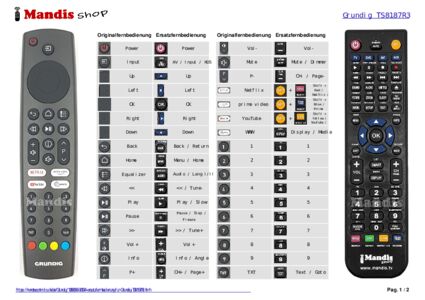 Ein Dokument ist enthalten, um die Verwendung der neuen Fernbedienung zu erleichtern, indem es die Tastenbelegung zeigt.