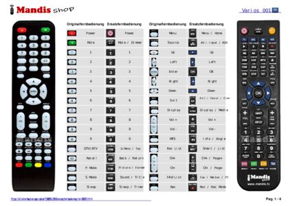 Ein Dokument ist enthalten, um die Verwendung der neuen Fernbedienung zu erleichtern, indem es die Tastenbelegung zeigt.