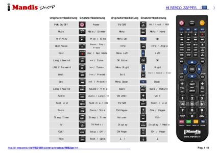 Ein Dokument ist enthalten, um die Verwendung der neuen Fernbedienung zu erleichtern, indem es die Tastenbelegung zeigt.