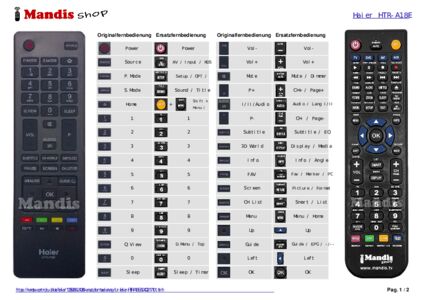 Ein Dokument ist enthalten, um die Verwendung der neuen Fernbedienung zu erleichtern, indem es die Tastenbelegung zeigt.