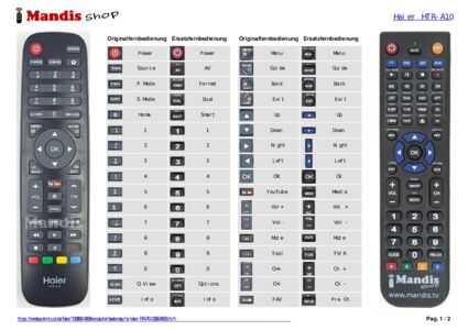 Home > Marken > Fernbedienungen Haier > Fernbedienung für Haier 0530044555 > Interaktive Tastenbelegung Haier 0530044555