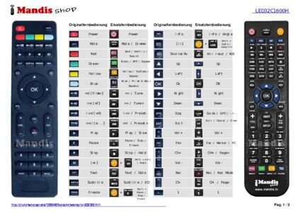 Diese Fernbedienung ersetzt Ihre LED32C1600H in vollem Umfang und bietet alle Funktionen des Originals.