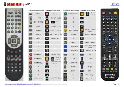 Ein Dokument ist enthalten, um die Verwendung der neuen Fernbedienung zu erleichtern, indem es die Tastenbelegung zeigt.
