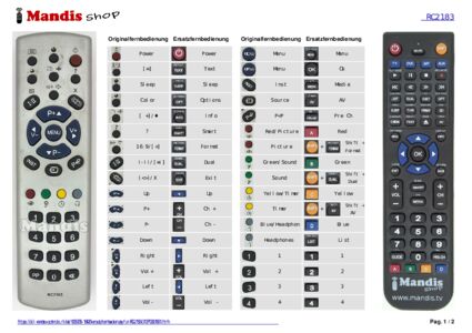 Diese Fernbedienung ersetzt Ihre RC 2183 (313P10821831) in vollem Umfang und bietet alle Funktionen des Originals.