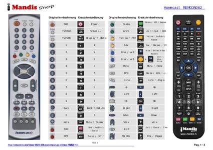 Diese Fernbedienung ersetzt Ihre Homecast001 in vollem Umfang und bietet alle Funktionen des Originals.