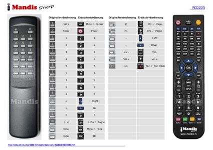 Diese Fernbedienung ersetzt Ihre RC 0205 / 00 in vollem Umfang und bietet alle Funktionen des Originals.