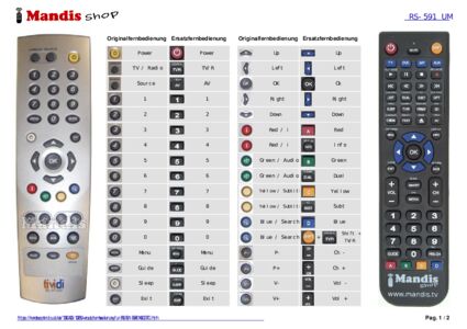 Diese Fernbedienung ersetzt die meisten Funktionen Ihres RS-591 UM (014002770). Es ist keine Universalfernbedienung, sondern eine Kopie mit den meisten Tasten und Funktionen Ihres Originals.