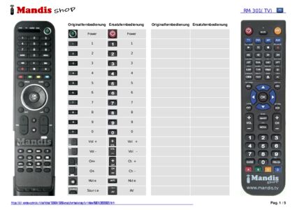 Ein Dokument ist enthalten, um die Verwendung der neuen Fernbedienung zu erleichtern, indem es die Tastenbelegung zeigt.