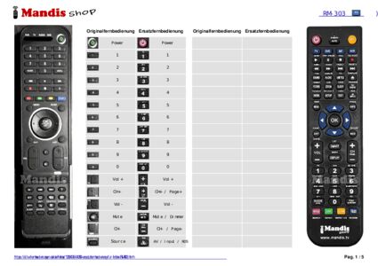 Diese Fernbedienung ersetzt Ihre RM-303 in vollem Umfang und bietet alle Funktionen des Originals.
