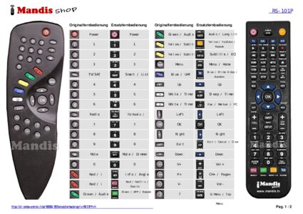 Diese Fernbedienung ersetzt Ihre RS-101P in vollem Umfang und bietet alle Funktionen des Originals.