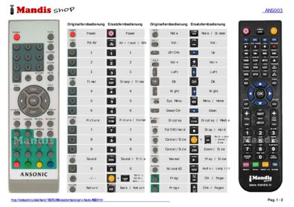 Diese Fernbedienung ersetzt Ihre TL1510BTP in vollem Umfang und bietet alle Funktionen des Originals.