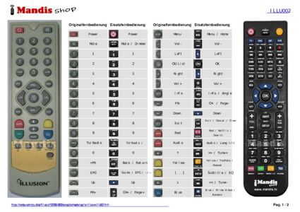 Ein Dokument ist enthalten, um die Verwendung der neuen Fernbedienung zu erleichtern, indem es die Tastenbelegung zeigt.