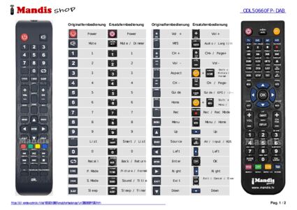 Diese Fernbedienung ersetzt Ihre ODL50660FP-DAB in vollem Umfang und bietet alle Funktionen des Originals.