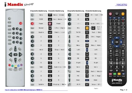 Diese Fernbedienung ersetzt Ihre Y96187R2 in vollem Umfang und bietet alle Funktionen des Originals.