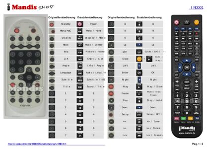 Ein Dokument ist enthalten, um die Verwendung der neuen Fernbedienung zu erleichtern, indem es die Tastenbelegung zeigt.