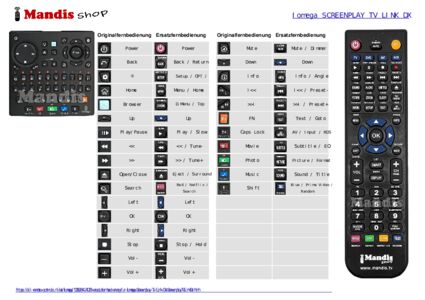 Ein Dokument ist enthalten, um die Verwendung der neuen Fernbedienung zu erleichtern, indem es die Tastenbelegung zeigt.