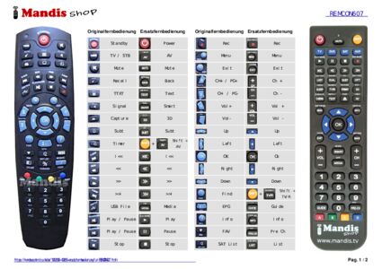 Diese Fernbedienung ersetzt Ihre REMCON607 in vollem Umfang und bietet alle Funktionen des Originals.