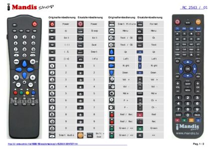Ein Dokument ist enthalten, um die Verwendung der neuen Fernbedienung zu erleichtern, indem es die Tastenbelegung zeigt.