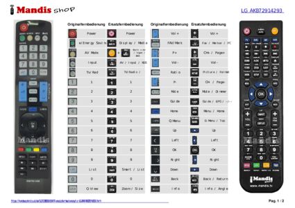 Ein Dokument ist enthalten, um die Verwendung der neuen Fernbedienung zu erleichtern, indem es die Tastenbelegung zeigt.