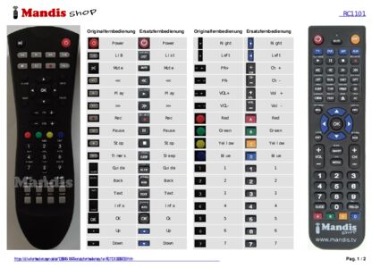 Diese Fernbedienung ersetzt Ihre RC 1101 (30058733) in vollem Umfang und bietet alle Funktionen des Originals.