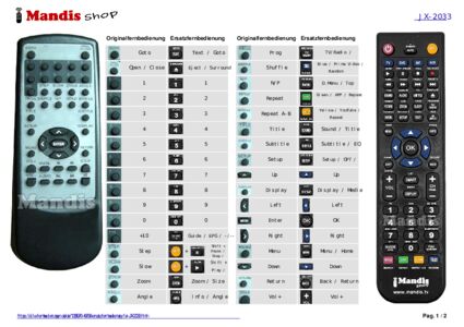 Ein Dokument ist enthalten, um die Verwendung der neuen Fernbedienung zu erleichtern, indem es die Tastenbelegung zeigt.