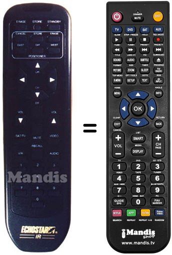 Fernbedienung, die das Original und die Gesamtheit seiner Funktionen, vollständig ersetzt. Es handelt sich jedoch nicht um eine Universalfernbedienung sondern um eine Fernbedienung die das Original ersetzt. Sie erhalten eine nach Einlegen der Batterien sofort einsatzbereite Fernbedienung. Jegliches Programmieren entfällt. Wir geben umfassende Garantie dafür, dass diese Fernbedienung alle Funktionen der Originalfernbedienung erfüllt.