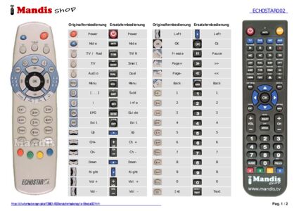 Ein Dokument ist enthalten, um die Verwendung der neuen Fernbedienung zu erleichtern, indem es die Tastenbelegung zeigt.