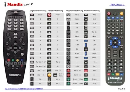 Diese Fernbedienung ersetzt die meisten Funktionen Ihres REMCON1191. Es ist keine Universalfernbedienung, sondern eine Kopie mit den meisten Tasten und Funktionen Ihres Originals.