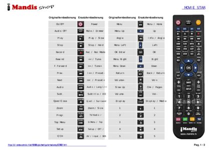 Ein Dokument ist enthalten, um die Verwendung der neuen Fernbedienung zu erleichtern, indem es die Tastenbelegung zeigt.