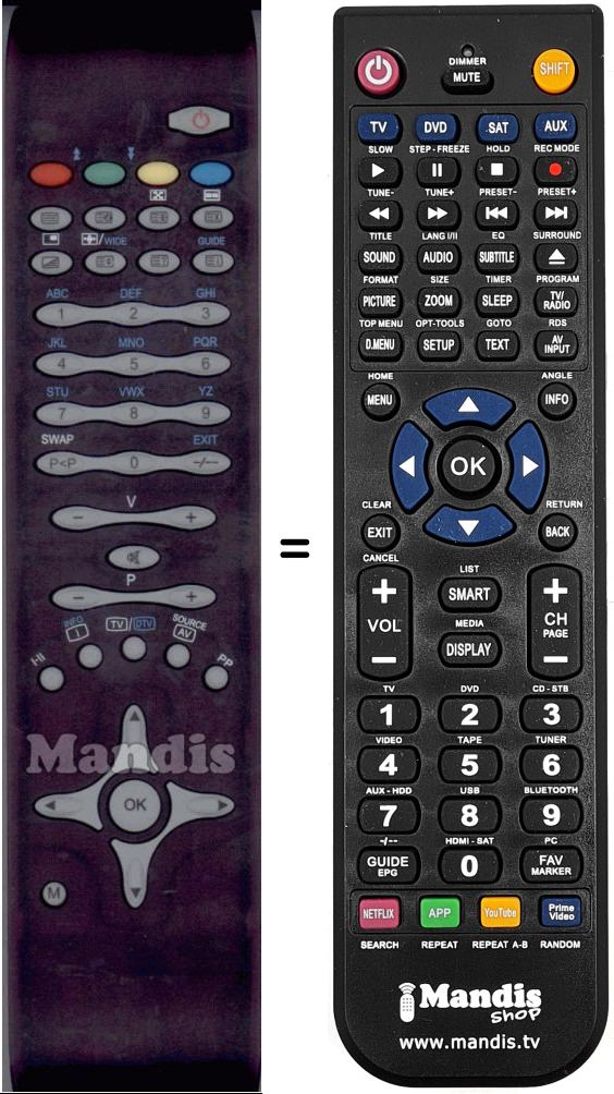 Es handelt sich jedoch nicht um eine Universalfernbedienung sondern um eine Fernbedienung die das Original ersetzt.