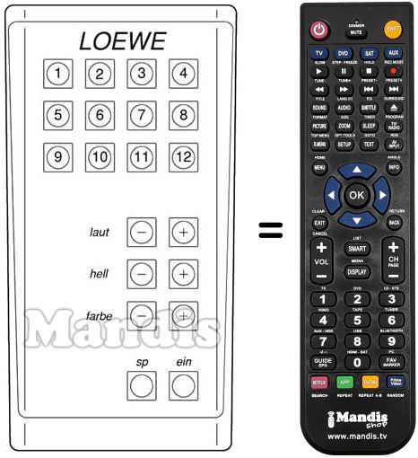 Fernbedienung, die das Original und die Gesamtheit seiner Funktionen, vollständig ersetzt. Es handelt sich jedoch nicht um eine Universalfernbedienung sondern um eine Fernbedienung die das Original ersetzt. Sie erhalten eine nach Einlegen der Batterien sofort einsatzbereite Fernbedienung. Jegliches Programmieren entfällt. Wir geben umfassende Garantie dafür, dass diese Fernbedienung alle Funktionen der Originalfernbedienung erfüllt.