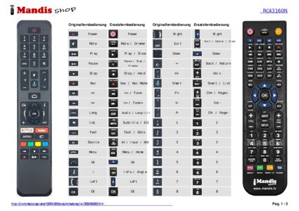 Diese Fernbedienung ersetzt Ihre CT8556 (RC43160N) in vollem Umfang und bietet alle Funktionen des Originals.