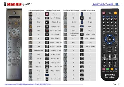 Ein Dokument ist enthalten, um die Verwendung der neuen Fernbedienung zu erleichtern, indem es die Tastenbelegung zeigt.