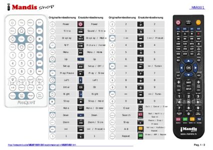 Diese Fernbedienung ersetzt Ihre MAR001 in vollem Umfang und bietet alle Funktionen des Originals.