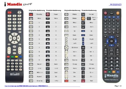 Diese Fernbedienung ersetzt Ihre MIE020V25 in vollem Umfang und bietet alle Funktionen des Originals.