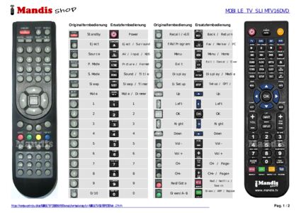 Diese Fernbedienung ersetzt Ihre SLIMTV16DVD Ver. 2 in vollem Umfang und bietet alle Funktionen des Originals.